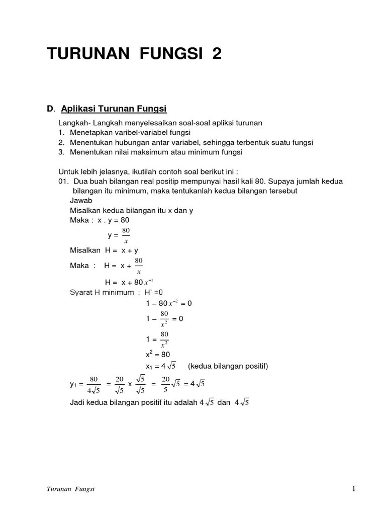 Sebuah papan digunakan untuk mencapai pagar setinggi 8 kaki untuk menopang dinding yang berada 1 meter di belakang pagar. Soal dan penyelesaian aplikasi turunan . Menentukan nilai optimum pada soal cerita menggunakan turunan. Diberikan suatu fungsi dengan persamaan y = 2x x. Soal dan penyelesaian aplikasi turunan fungsi part 2 youtube (rosa simmons) sebenarnya contoh perubahan kimia bisa kita temui di sekitar kita dalam kehidupan.